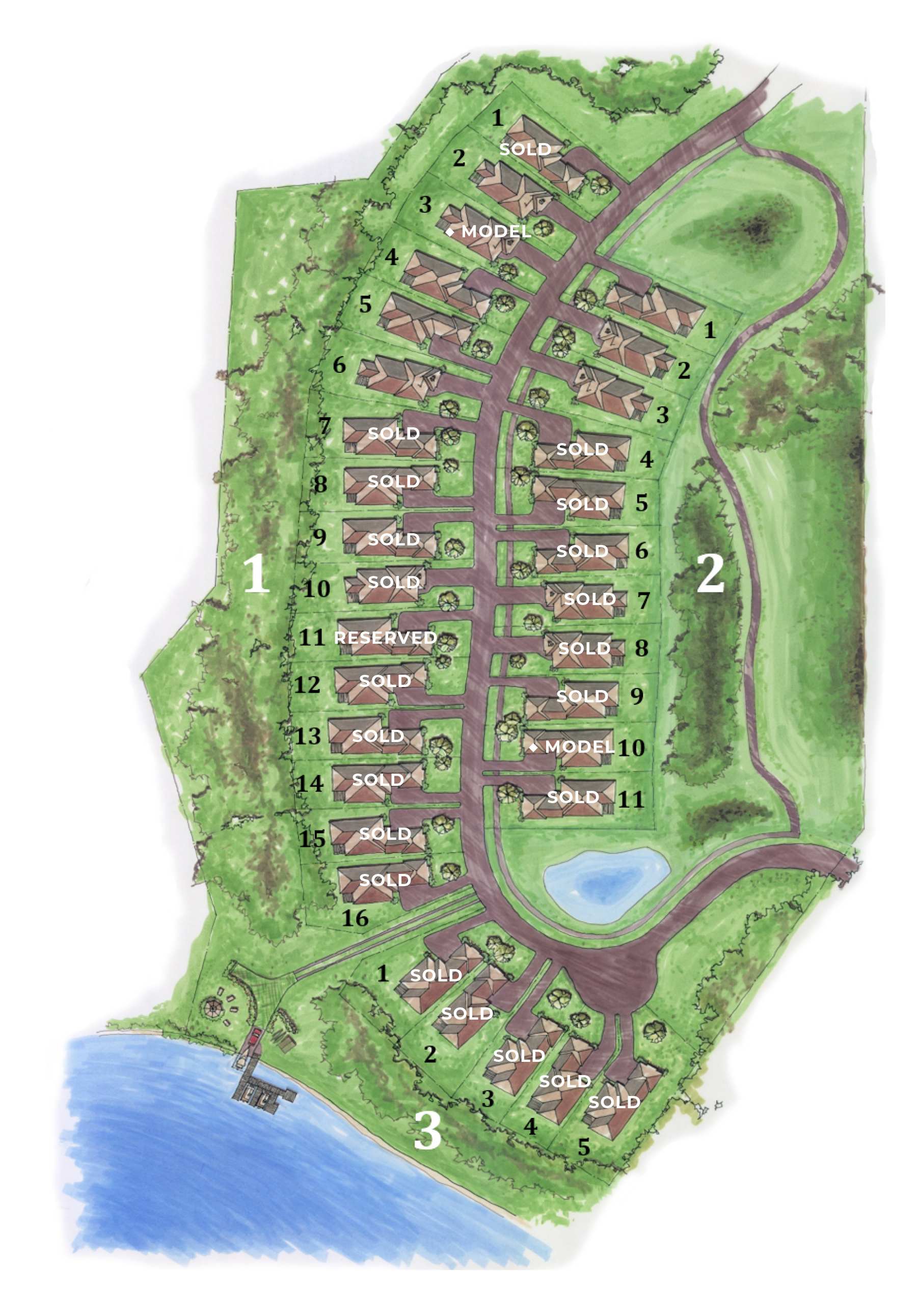The Charles Cudd Co. and their development team have started a new lakeside residential detached villa home neighborhood on Schutz Lake called Waterford Landing. We offer a carefree luxury living opportunity designed primarily for the “empty nester” market. These beautifully designed villa homes feature main floor living with owner’s suite, as well as the primary living areas such as a great room, kitchen, sunporch, deck, dining room, bathrooms, laundry and mudroom. The homes will have additional area in the daylight lower level including a recreation space, game room, exercise room, 2 additional bedrooms and a full bath. There will also be some floor plans that will offer options for 2 bedrooms, a bath and a loft on the upper level.